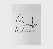 Celebrate la sposa con il disegno personalizzato del nome della sposa. Questo elegante ricordo presenta il suo nome in un'elegante tipografia, perfetto come regalo per docce nuziali, matrimoni o per commemorare il suo giorno speciale.