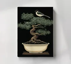 Un elegante corvo dalle proporzioni realistiche siede su un ramo curvo e tiene in mano un trifoglio. Lo sfondo verde scuro sottolinea la profondità del motivo.