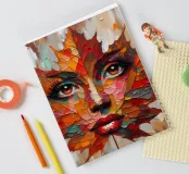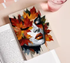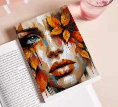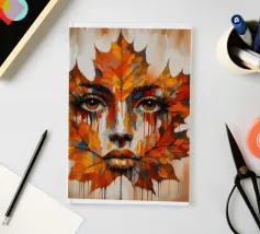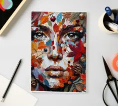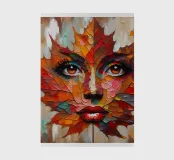 Acrylic portrait painting of a woman's face on a leaf.