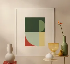 Armonia semplice Questo pezzo esplora il tranquillo equilibrio che si trova in forme geometriche semplici e in una tavolozza di colori contenuta. La composizione è incentrata su una calda forma ad arco in terracotta, che fa pensare a una porta o a una soglia architettonica, parzialmente sovrapposta a un cerchio verde salvia. Una delicata linea orizzontale e un piccolo punto grigio aggiungono precisione alle forme altrimenti morbide e organiche. Realizzato in uno stile moderno e minimalista, crea una sensazione di tranquilla quiete e di equilibrio senza tempo.