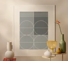 Armonia semplice Questo pezzo esplora il tranquillo equilibrio che si trova in forme geometriche semplici e in una tavolozza di colori contenuta. La composizione è incentrata su una calda forma ad arco in terracotta, che fa pensare a una porta o a una soglia architettonica, parzialmente sovrapposta a un cerchio verde salvia. Una delicata linea orizzontale e un piccolo punto grigio aggiungono precisione alle forme altrimenti morbide e organiche. Realizzato in uno stile moderno e minimalista, crea una sensazione di tranquilla quiete e di equilibrio senza tempo.