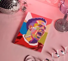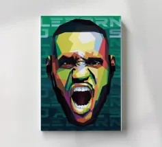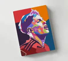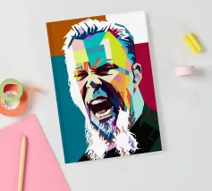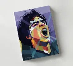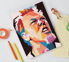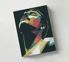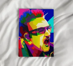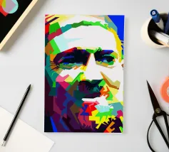 WPAP (Wedha's Pop Art Portrait) è uno stile artistico geometrico, vibrante e colorato che enfatizza gli angoli acuti e i contrasti di colore. Un ritratto di Sinéad O'Connor in stile WPAP presenterebbe la sua sorprendente struttura facciale con forme spigolose e taglienti in colori vivaci e contrastanti. La sua caratteristica testa rasata e il suo sguardo intenso sarebbero accentuati da audaci motivi geometrici. L'opera d'arte catturerebbe la sua profondità emotiva e il suo spirito ribelle, riflettendo la sua eredità di musicista e attivista senza paura.