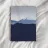 Strati di colline o montagne in varie tonalitร  di blu creano un senso di profonditร , fino a una grande vetta innevata sullo sfondo. Lo stile รจ minimalista e utilizza un gradiente di colori per trasmettere la silhouette del paesaggio contro un cielo chiaro.