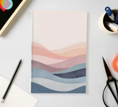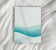 Delicate curve di blu e pesca creano un motivo astratto rilassante che evoca un senso di pace e relax. Questo disegno è perfetto per un arredamento moderno.
