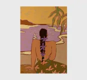 Una donna guarda verso l'orizzonte, con una conchiglia appoggiata sulla spalla, ascoltando i sussurri del vento e il ritmo delle onde. L'oceano la chiama dolcemente, invitandola a soffermarsi in questo momento di quiete, dove l'anima e il mare si incontrano in una dolce armonia.