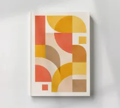 Questa composizione astratta esplora l'armonia attraverso la sovrapposizione di forme geometriche e una tavolozza calda di ispirazione vintage. I rettangoli arrotondati si intersecano dolcemente, creando trasparenze stratificate che suggeriscono movimento e profondità senza una struttura rigida. I toni della terracotta, del corallo, dell'ocra, del crema tenue e dell'oro tenue evocano il design moderno della metà del secolo scorso, pur rimanendo freschi e contemporanei. La sottile texture superficiale aggiunge una qualità tattile, bilanciando precisione e calore. L'opera d'arte riflette un ritmo e un equilibrio tranquilli, rendendola un pezzo raffinato per interni moderni, minimalisti o di ispirazione rétro.