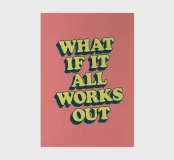 Ravvivate il vostro spazio con questa stampa d'arte in stile retrò che riporta la frase "What if it All Works Out" (E se tutto si risolve) in grassetto, in lettere giallo sole e con un'atmosfera giocosa anni '70. Su uno sfondo rosa tenue, è il promemoria perfetto per mantenere la speranza e abbracciare la positività. Ideale da regalare in occasione di compleanni, lauree o per rinnovare la casa, questa stampa è pensata per dare calore e incoraggiamento a qualsiasi parete. Una scelta ideale per gli amanti delle tendenze, i sognatori e coloro che amano il fascino vintage con un tocco moderno.
