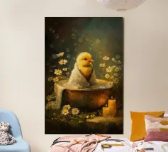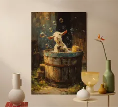Pittura a olio di un simpatico fantasma nella vasca idromassaggio con bolle e fiori