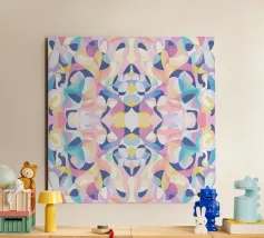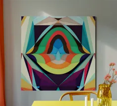 Stampa d'arte di un motivo decorativo colorato. Poster d'arte mandala simmetrico multicolore. Vibrazioni artistiche spirituali e gioiose. Buone vibrazioni e colori amorevoli. Disegno geometrico astratto, composizione moderna e vibrante, un gioco di simmetria e minimalismo. #AestheticDecor, ModernHomeStyle, ElegantInteriors, WallArtDesign, CozyVibes, PastelInteriors, StylishSpaces, ArtForInteriors, ChicRoomDecor, ContemporaryDecor