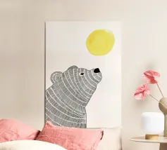Questa audace illustrazione a inchiostro è stata creata su carta acquerello, utilizzando tratti ricchi e scuri per dare vita a un orso semplificato. Con la sua forma forte e grafica e i dettagli minimi, l'orso diventa quasi emblematico: robusto, calmo e silenziosamente potente. Il contrasto tra il nero inchiostro della forma e la consistenza morbida della carta conferisce all'opera una presenza sorprendente e al tempo stesso solida!