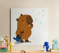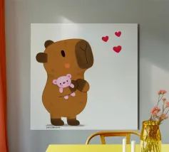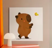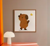Simpatico disegno di capibara che guarda una dolce farfalla gialla