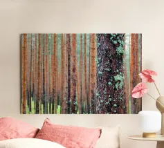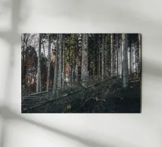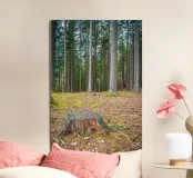 Ceppo di albero in una fitta foresta di conifere pannello forex