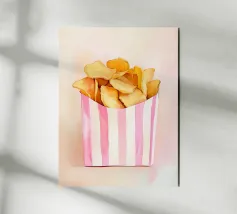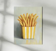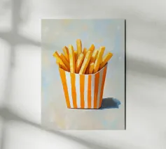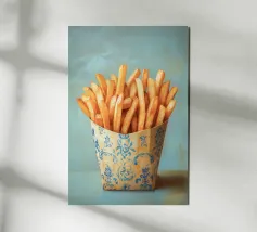 Le patatine fritte sono un capolavoro culinario che nella loro semplicità sono una delizia ineguagliabile. Uniscono croccantezza e tenerezza in un solo boccone e sono un simbolo universale di divertimento e convivialità. La loro versatilità le rende l'accompagnamento perfetto per innumerevoli piatti, dagli hamburger alle insalate. Le patatine ci ispirano ad apprezzare i piccoli momenti di piacere della vita quotidiana e ad assaporare i semplici piaceri della vita. Che siano uno spuntino o un contorno, portano sempre un po' di felicità nel piatto.