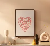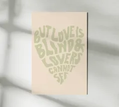 Una stampa d'arte elegante per tutti i romantici! Il design minimalista di questo cuore con la citazione poetica "But love is blind & lovers cannot see" combina un'estetica semplice con un significato profondo. La giocosa tipografia disegnata a mano aggiunge un tocco artistico all'immagine e la rende un pezzo senza tempo. Perfetto per salotti moderni, camere da letto o come regalo per persone speciali. La combinazione di colori caldi, in un tenue rosé, crea un'atmosfera delicata e armoniosa ed è ideale per gli stili d'interni scandinavi o minimalisti.