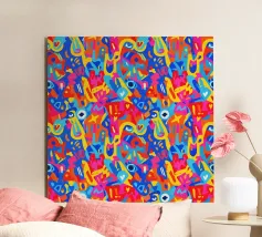 In "Echo Grid", ogni elemento sembra rispondere all'altro in una griglia invisibile. I motivi ripetuti creano un senso di ordine e stabilità, ma ogni variazione di colore o forma introduce una vibrazione discreta, quasi musicale. L'insieme evoca un tessuto grafico, una trama vibrante che attira lo sguardo senza aggredirlo. L'opera è in perfetto equilibrio tra rigore e movimento, minimalismo e ricchezza.