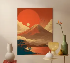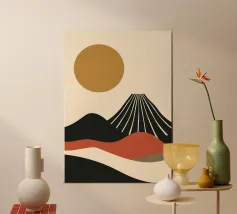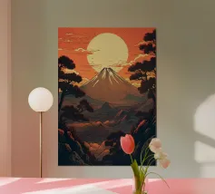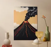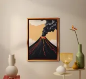 Questa opera d'arte audace e grafica cattura la potenza e la bellezza di un'eruzione vulcanica. Il fumo scuro e vorticoso contrasta con la lava arancione brillante, creando un'immagine dinamica e accattivante. Le linee semplici e i colori piatti conferiscono all'opera un'atmosfera moderna e minimalista. Questo pezzo sarebbe un'ottima aggiunta a qualsiasi casa o ufficio.