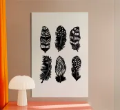 Una combinazione di piume create con timbri linoleum e inchiostro. Un'illustrazione forte, in bianco e nero.