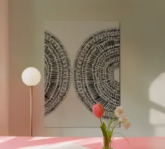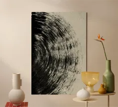 Quest'opera d'arte colpisce per le sue linee impeccabili e l'effetto ipnotico dei cerchi geometrici. In bianco e nero, si integra perfettamente in interni minimalisti e moderni, creando un look sofisticato e senza tempo. Un must per gli amanti del design che apprezzano le strutture chiare.