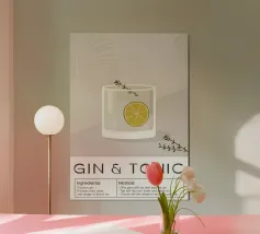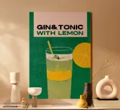 gin and tonic lemon ice cubes drinking straw cocktail glass green background refreshing drink beverage citrus cocktail yellow accents hydration summer drink cooling drink lemon slice sparkling drink bar menu drink illustration alcoholic beverage text