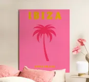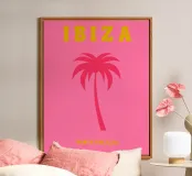 Poster di Ibiza stampato, poster di viaggio, decorazione della stanza preppy, poster rosa brillante, decorazione della stanza del dormitorio, arte da parete rosa, Barbiecore Aesthetic