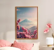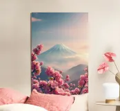 Una vista mozzafiato del maestoso Monte Fuji che si staglia nel cielo limpido di primavera. In primo piano, delicati fiori di ciliegio (sakura) danzano nel vento, conferendo alla scena una poetica leggerezza. La combinazione tra la forza della natura e la bellezza dei fiori simboleggia la transitorietà, l'armonia e il profondo legame tra la cultura giapponese e la natura. Questa immagine cattura perfettamente la magia della stagione della fioritura dei ciliegi, ideale per opere d'arte da parete, calendari o diari di viaggio. Suggerimento: perfetto per tutti coloro che sognano di viaggiare o che vogliono portare un pezzo di tranquillità e di estetica giapponese nella loro casa.