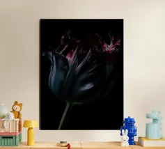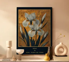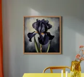 Questa splendida opera d'arte cattura la bellezza di un singolo iris nero in tutto il suo splendore. L'artista ha reso magistralmente gli intricati dettagli del fiore, dalla consistenza vellutata dei petali alle delicate venature delle foglie. I colori ricchi e scuri dell'iris contrastano magnificamente con lo sfondo morbido e tenue, creando un senso di drammaticità ed eleganza. Questo pezzo sarebbe un'aggiunta perfetta a qualsiasi casa o ufficio, aggiungendo un tocco di raffinatezza e stile.