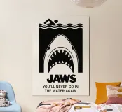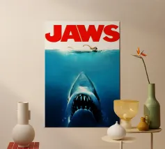 Stampa Jaws, Poster cinematografico alternativo, Bianco e nero, Stampe minimaliste di qualità, Cine, Orca, Attacco dello squalo, Grande squalo bianco, Regalo per i fan del cinema