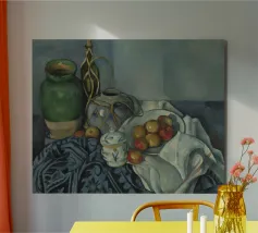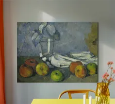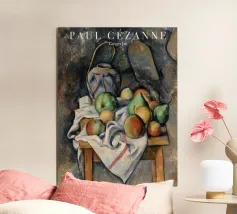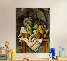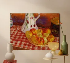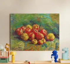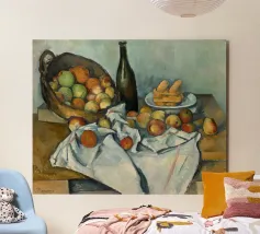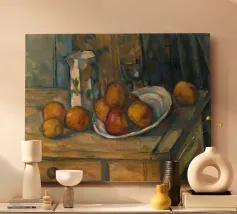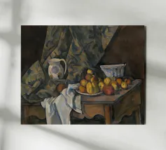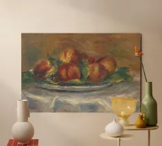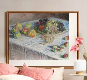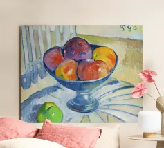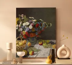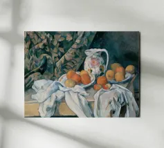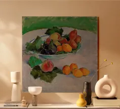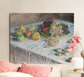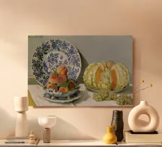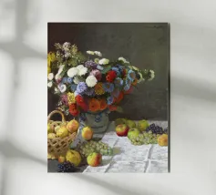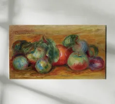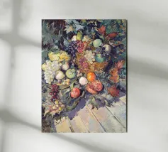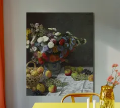 Un'affascinante natura morta del maestro impressionista Claude Monet, che mette in mostra la tranquilla eleganza degli oggetti quotidiani Presenta una disposizione rustica di mele e uva su un tavolo rivestito di bianco, immerso in una morbida luce naturale Cattura la bellezza fugace della frutta matura con pennellate sciolte e tonalità calde e autunnali Un'opera intima che si discosta dai famosi paesaggi di Monet e che è stata dipinta in casa durante il maltempo. Un'opera d'arte senza tempo e rilassante, perfetta per cucine, sale da pranzo o qualsiasi altro interno accogliente Regalo ideale per gli amanti dell'arte, per i cuochi o per chi apprezza l'estetica rustica e la natura morta