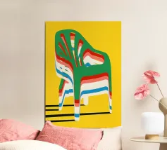 Questa stampa celebra l'iconico design modernista con una rappresentazione audace e colorata della famosa sedia. Perfetta per aggiungere un tocco di stile retro-moderno alla vostra casa o al vostro spazio di lavoro.