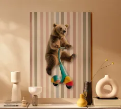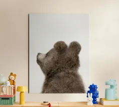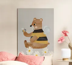 Questo poster minimalista di Artezza mostra un giovane orso curioso che osserva un'ape in volo. Sopra di loro, delicati fiori bianchi primaverili sbocciano su un ramo. La composizione calma su uno sfondo beige caldo combina natura, curiosità e leggerezza infantile. Ideale per gli amanti della natura, per le camere dei bambini o per un'elegante dichiarazione di design.