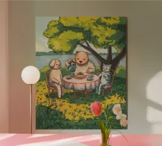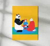 Amante degli animali? Questa illustrazione di panda e cane è la scelta perfetta per voi! Questo simpatico e colorato disegno è perfetto per un regalo o una collezione personale.