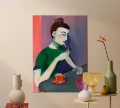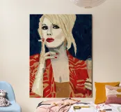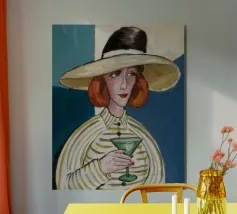 Un ritratto audace come il suo atteggiamento. Questa straordinaria immagine di Patsy Stone, immersa in un ricco blu Hague, trasmette un glamour inequivocabile con un tocco fresco e contemporaneo. Perfetta per gli amanti dello stile iconico, dell'arguzia e degli interni che osano distinguersi.