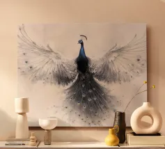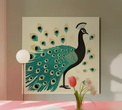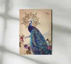 Illustrazione di pavone dipinta a mano ad acquerello.