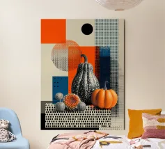 Sechs charmante Kürbisse in leuchtenden Farben und ungewöhnlichen Formen zieren dieses liebevoll illustrierte Poster. Jeder Kürbis ist ein Unikat. Die handgezeichneten Details und der dunkle, strukturierte Hintergrund verleihen dem Motiv eine herbstlich-edle Note. Ideal für alle, die saisonale Deko mit künstlerischem Flair lieben. Perfekt als Wandbild für Küche, Wohnzimmer oder Atelier!