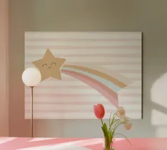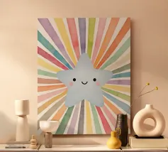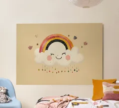 Brighten your space with Rainbow Cloud. Colours: Soft pinks, peach, cream, and warm neutrals. Perfect for nurseries, bedrooms and cozy reading nooks