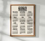 Pulito, audace e senza tempo: il calendario Retro Minimal 2026 è un'opera di stile e struttura. Il suo semplice sfondo beige e la tipografia di ispirazione vintage lo rendono un elegante accento da parete che si adatta perfettamente a qualsiasi interno. Perfetto per chi apprezza un design pratico ed estetico.