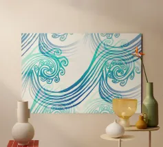 Un audace motivo astratto con un tocco di energia dinamica che simboleggia il movimento e la fluidità. Colori vivaci che evocano temi come l'acqua, la vita e il movimento. Una fusione innovativa di tradizione e modernità per interni contemporanei e minimalisti. Un linguaggio visivo unico che supera i confini culturali.