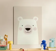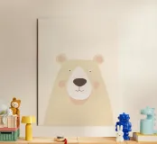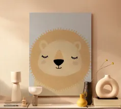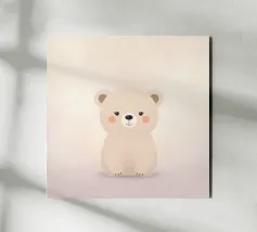 Una delicata illustrazione minimalista di un orso dai colori chiari, realizzata con forme morbide, sfumature delicate e una tavolozza di colori caldi e neutri. L'espressione serena e lo sfondo arioso conferiscono a quest'opera d'arte un'atmosfera tranquilla e rassicurante. Perfetta per camerette, stanze dei bambini o interni moderni di ispirazione scandinava, quest'opera aggiunge un tocco di calore e un senso di tranquillo fascino a qualsiasi spazio.