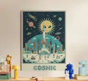 Per la camera dei bambini, poster illustrato e disegnato che raffigura lo spazio.