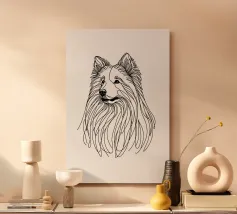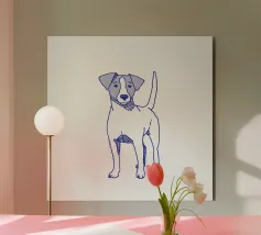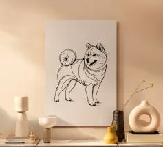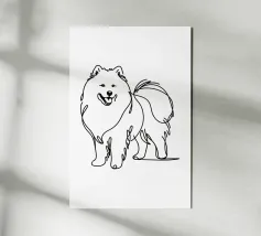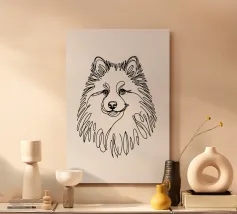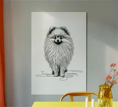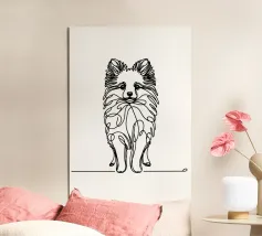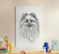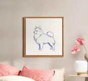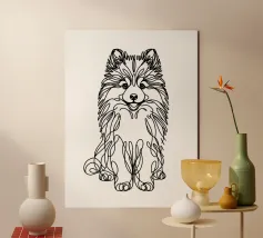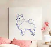 Blue line drawing of a Spitz. The dog motif is best suited to very light backgrounds.