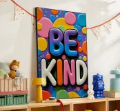 Testo BE KIND con forme colorate pannello forex