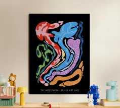 Arte murale astratta in stile metà secolo di Jazzberry Blue.