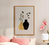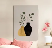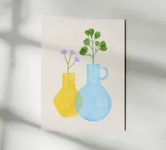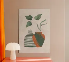 Questa splendida opera d'arte digitale cattura la serena bellezza della natura con una composizione che presenta due eleganti vasi ornati da rigogliose foglie botaniche. Il design minimalista ma vibrante evoca una sensazione di calma e di connessione con la natura, rendendolo perfetto per aggiungere un tocco di calore ed eleganza a qualsiasi spazio. Utilizzata come decorazione murale, come stampa per la casa o come parte di una collezione digitale, quest'opera d'arte invita gli spettatori ad abbracciare la bellezza della semplicità e il fascino senza tempo delle forme naturali.