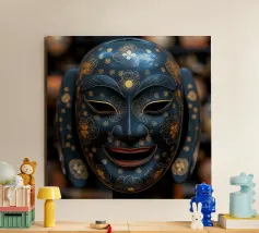 Una splendida collezione di maschere veneziane artigianali esposte in una sontuosa vetrina di legno. Gli intricati dettagli in oro, le ricche piume e i colori vivaci riflettono l'eleganza senza tempo del Carnevale di Venezia. Ogni maschera racconta una storia di mistero, tradizione e artigianato artistico. La calda illuminazione ambientale esalta il fascino del lusso, rendendo quest'opera d'arte perfetta per gli amanti del patrimonio europeo e dell'estetica teatrale. Un must per chi apprezza l'arredamento sofisticato e la bellezza culturale.