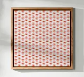 A repetitive wave-like pattern in shades of red and pink forms a geometric design. The pattern is evenly distributed across a light background, creating a visually harmonious effect.