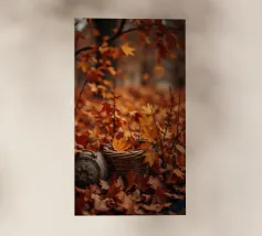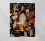 Una foglia rossa giace a terra, il suo colore risplende caldo contro la terra come segno dell'autunno.