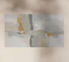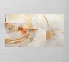 Quest'opera d'arte è una composizione astratta in formato panoramico, caratterizzata da un mix dinamico di texture, colori e forme geometriche. La texture è ricca, con pennellate visibili e strati di colore che creano un'atmosfera speciale. Il gioco di toni verdi e terrosi con accenti metallici conferisce all'opera un'energia armoniosa e vibrante.