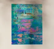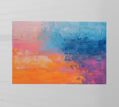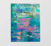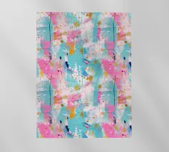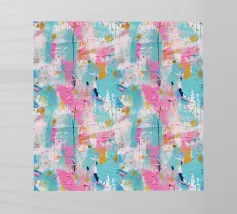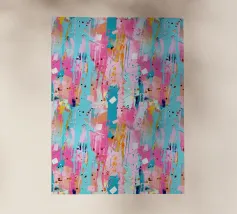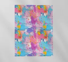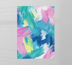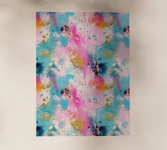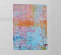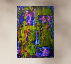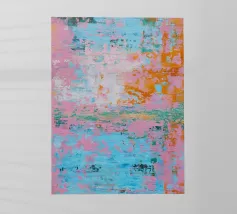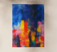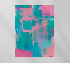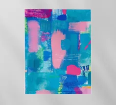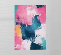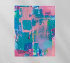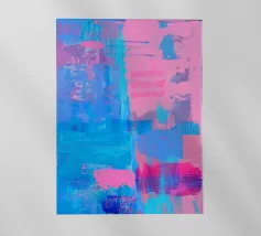 Le vibranti tonalità di rosa, blu e turchese si fondono in un vivace disegno astratto, creando un senso di movimento ed energia. I tratti audaci e i colori stratificati evocano un'atmosfera dinamica ed espressiva.