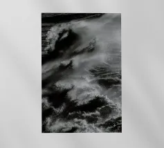 Masse d'acqua della cascata Dettifoss in Islanda. Fotografia astratta in bianco e nero di gocce d'acqua in caduta e vortici d'acqua, ideale per chi ama la destinazione turistica scandinava dell'Islanda.