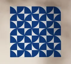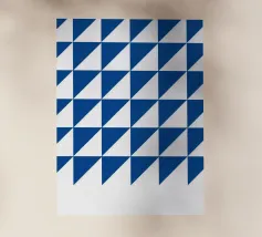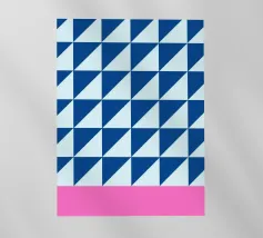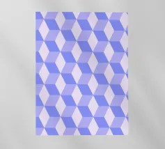 Questa immagine presenta un motivo geometrico composto da forme triangolari alternate, ciascuna riempita da linee orizzontali disegnate a mano.I triangoli sono disposti in un formato a griglia, creando un design ripetitivo e strutturato.La tavolozza dei colori offre uno sfondo morbido e viola con linee blu scuro all'interno dei triangoli.L'effetto disegnato a mano aggiunge una sensazione dinamica e strutturata al motivo altrimenti nitido e angolare.Questo design moderno è ideale per progetti grafici, tessuti o sfondi digitali e offre una sensazione dinamica e strutturata.